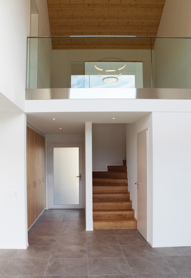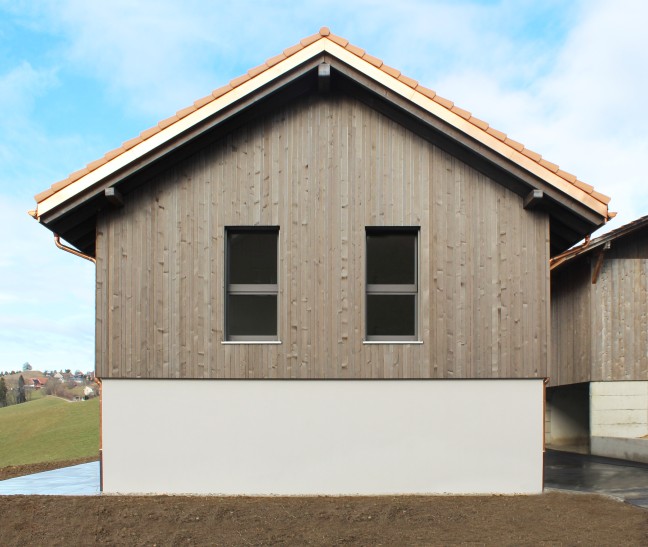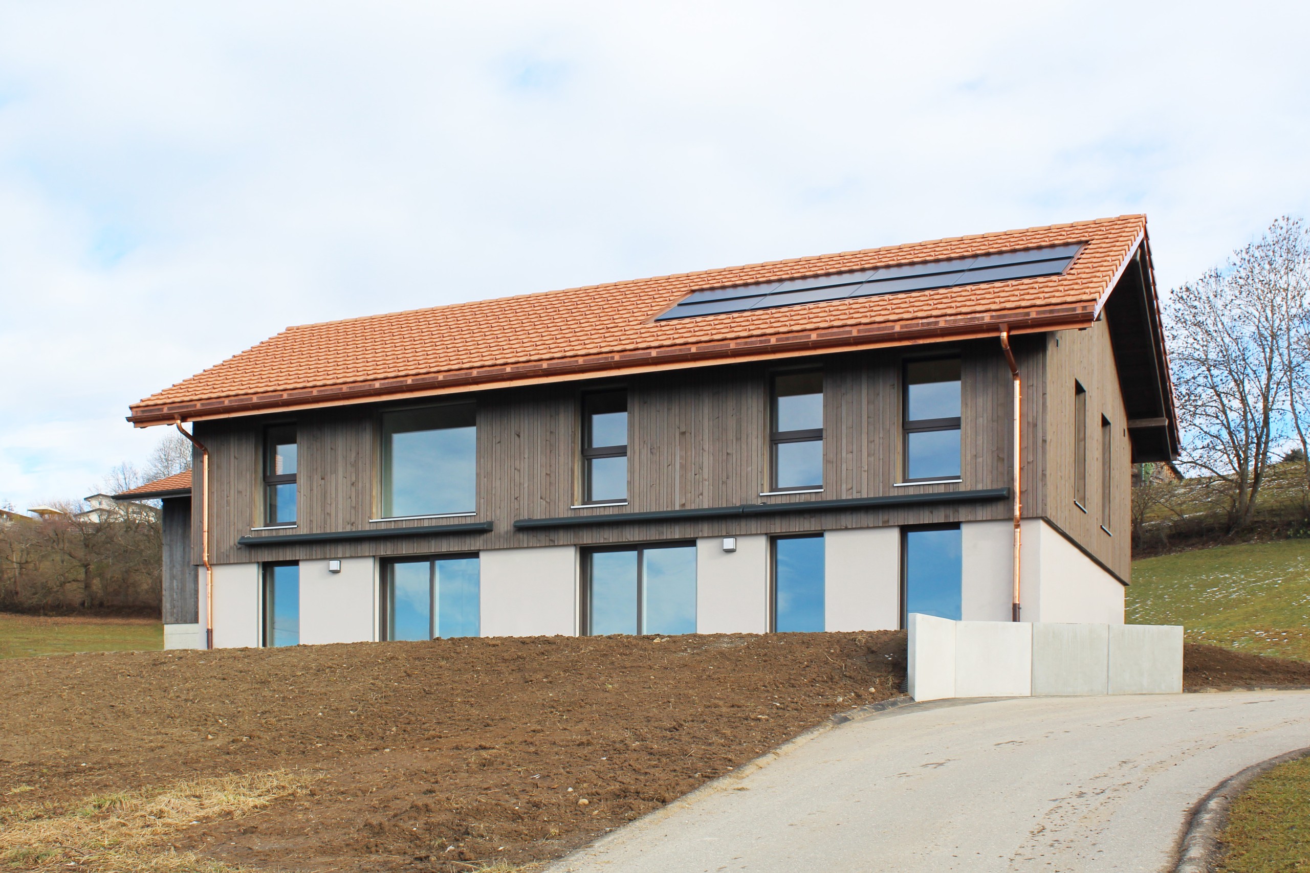 Construction de deux habitations individuelles sur deux niveaux, avec terrasses offrant une vue sur le lac de la Gruyère.